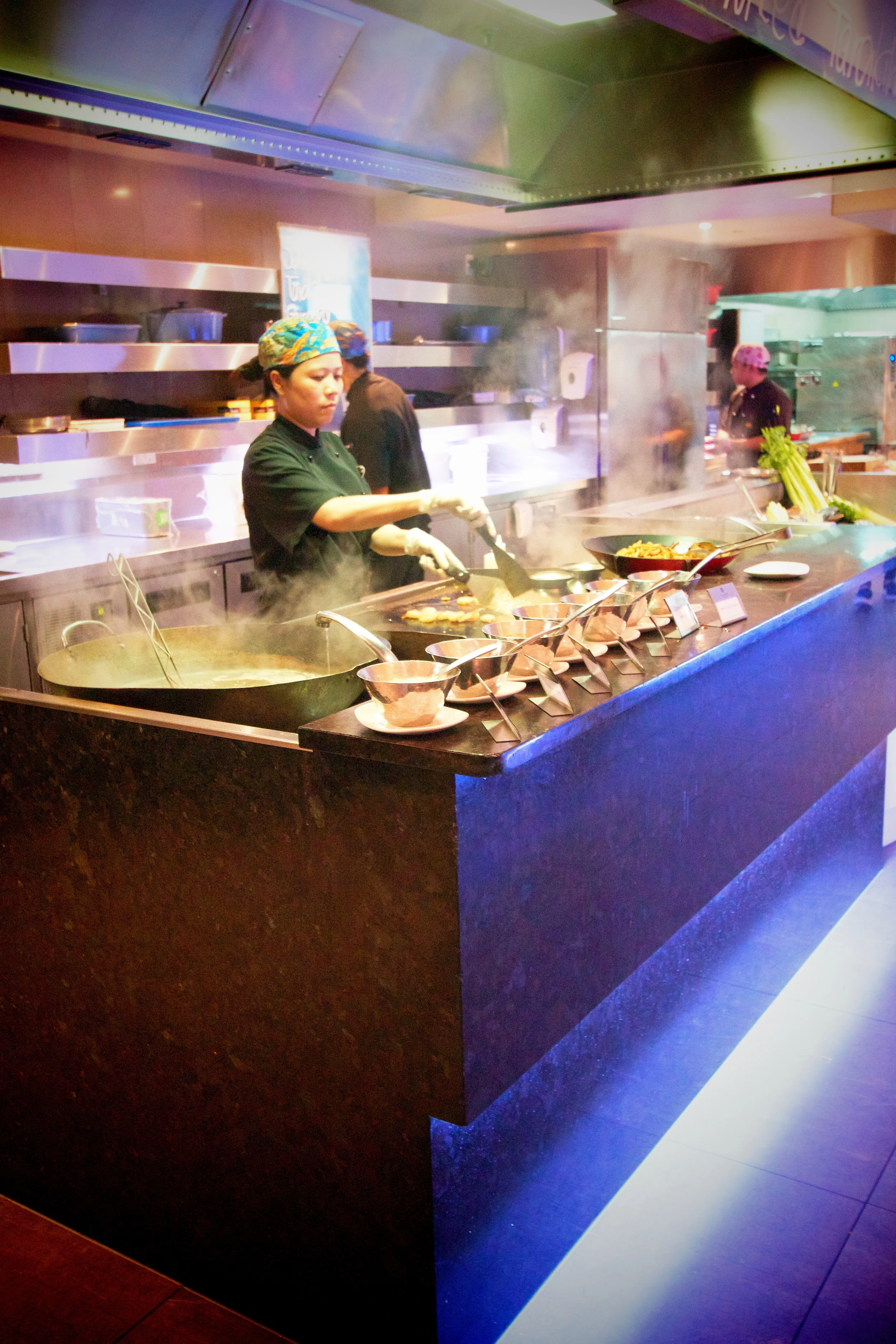 I love finding restaurants that try out new concepts for dining and not only was Eight doing just that, it had terrific reviews to match. Eight is a new take on a buffet, where it is all you can eat with eight different kitchen stations with a large variety of delicious choices. Now I'm not a person who enjoys buffets, but here's the twist - each dish is cooked to order to your liking at the various stations and is made of top notch ingredients. We were blown away at the level of quality in the food, especially considering the wide selection of seafood and meat, including sashimi, shrimp, scallops, lamb, venison and top quality beef cuts. The service level also matched that of the food quality; the staff was attentive, informative and did everything they could to ensure that the guests left happy and satisfied with every detail of their meal. The dessert bar was especially exciting as it had everything from fresh made waffles and Nutella to Swiss ice-cream and a chocolate fountain. My mouth is watering just thinking about it! Eight truly has something for everyone and provides guests with a high end dining experience unlike any other in the city.